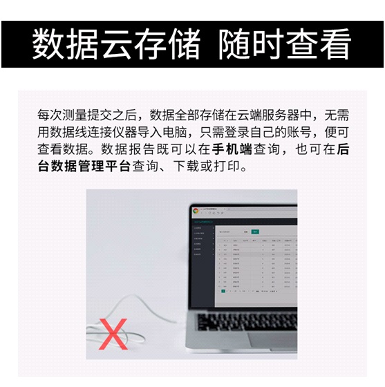 THL183plus可通過藍(lán)牙將存儲的數(shù)據(jù)下載到電腦,對數(shù)據(jù)進(jìn)行編輯、存儲、打印報告等。同時也可連接到我公司開發(fā)的云服務(wù)平 臺,對數(shù)據(jù)進(jìn)行存儲、查看、和分享,還可以將實時檢測數(shù)據(jù)分享他人,實現(xiàn)在線監(jiān)測的目的。